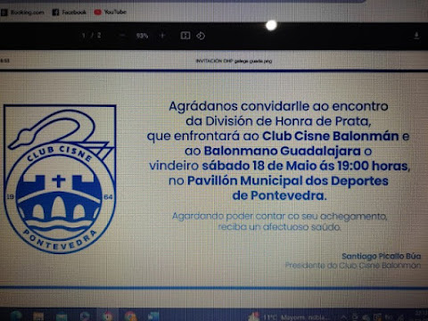 Este sábado, 18 de maio, o Club Cisne de balonmán xoga un importantísimo partido contra o Balonmano Guadalajara onde pode certificar a súa presencia no playoff polo ascenso de categoría, unha tempada despóis de abandonar a liga ASOBAL; polo cal, o seu presidente Santi Picallo, invita ao alumnado do colexio a asistir de forma gratuita a este trascendental partido que se xogará o sábado as 19:00 horas no pavillón municipal de deportes de Pontevedra.