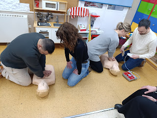 Fixemos unha explicación da formación que recibe a cativada cunha pequena explicación do programa "RCP na AULA", titulación que reciben o noso alumando en 6º de Ed. Primaria, video explicativo e práctica con monecos e co DESA. Falamos da Posición Lateral de Seguridade, de RCP en cativos e da Manobra de Heimlich.